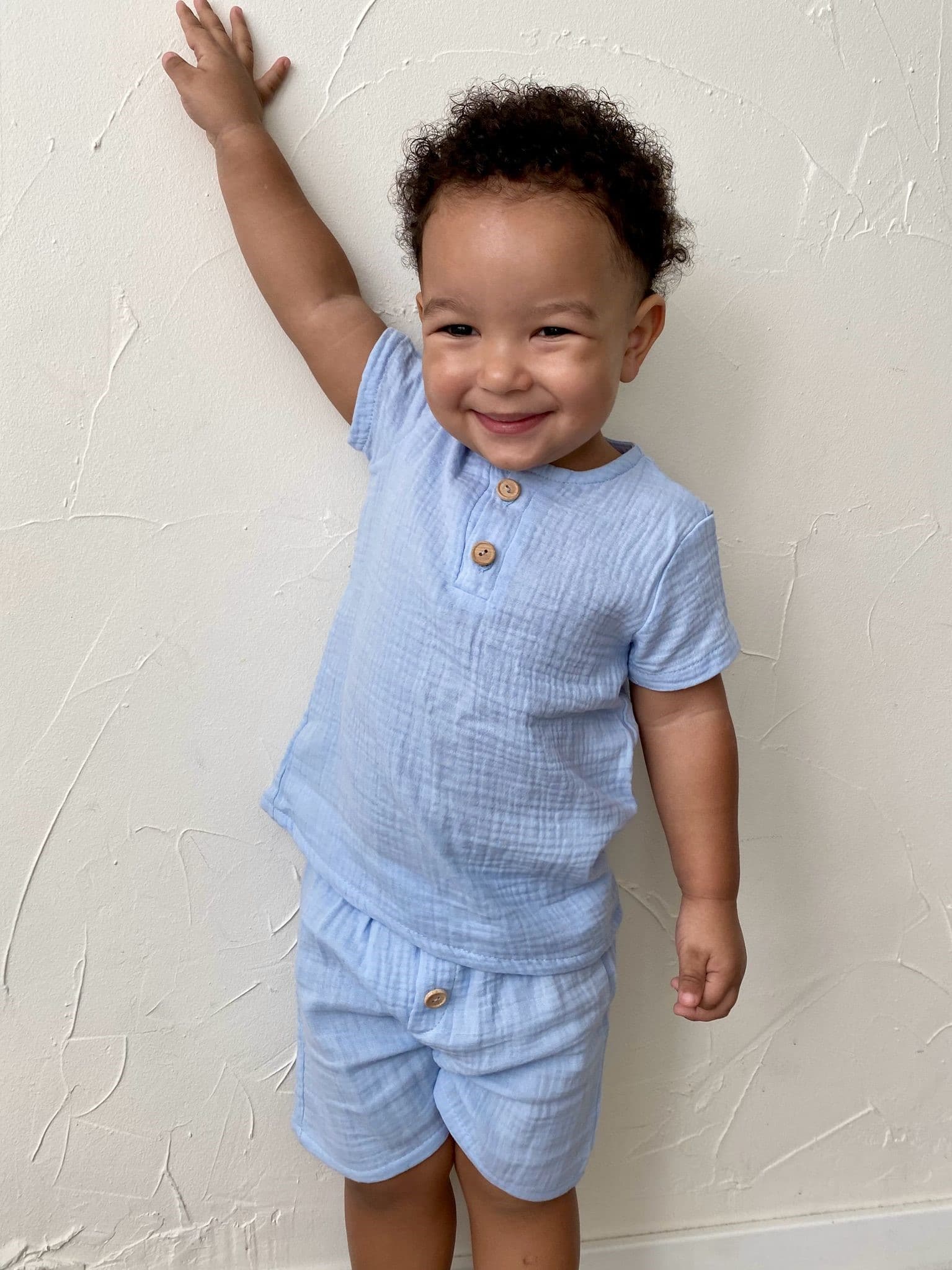 Wykonany z miękkiego, oddychającego muślinu bawełnianego, idealnie sprawdzi się w ciepłe dni.